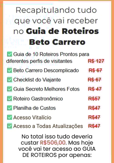 Foi por isso que eu decidi transformar toda essa experiência no Guia de Roteiros. Pra que você não precise aprender do jeito difícil — e consiga aproveitar o Beto Carrero de forma inteligente, segura e leve, mesmo que seja a sua primeira vez.