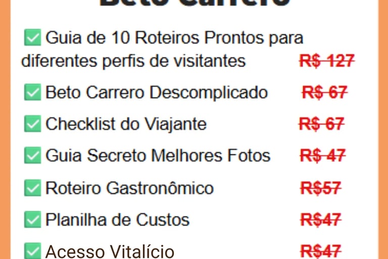 Você recebe 10 roteiros prontos, testados e aprovados, com a ordem ideal das atrações, horários e sugestões práticas.