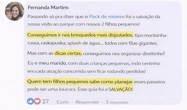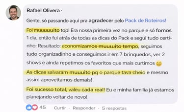 Você recebe 10 roteiros prontos, testados e aprovados, com a ordem ideal das atrações, horários e sugestões práticas.